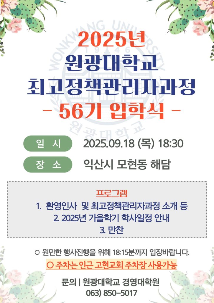 최고정책관리자과정 제 56기 가을학기 입학식 안내
