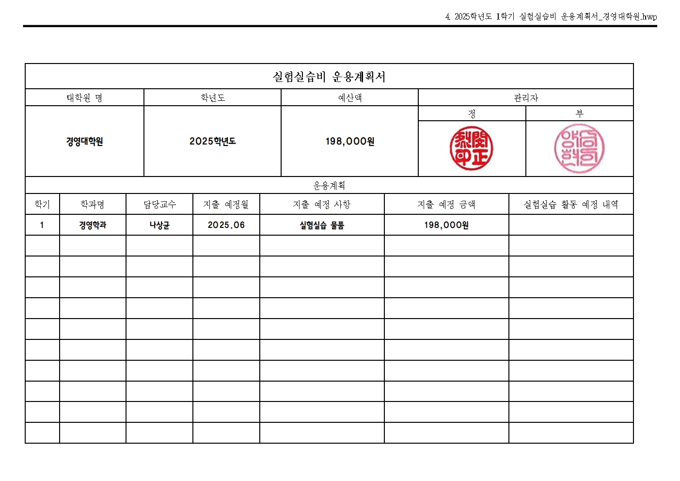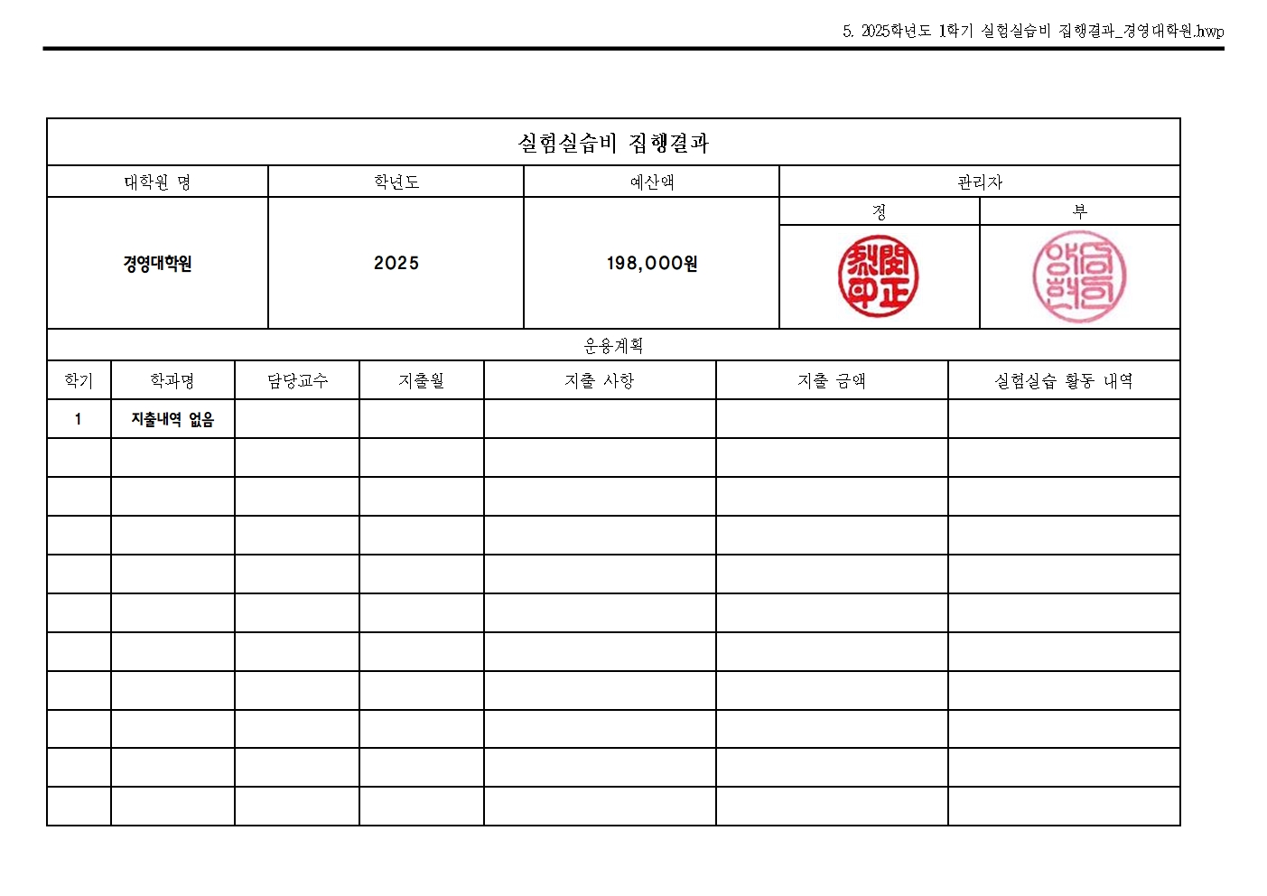 자료실 홈게시판자료실 2025학년도 경영대학원 실험실습비 운영계획서 및 집행결과 안내 2025학년도 경영대학원 실험실습비 운영계획서 및 집행결과 안내 경영대학원2025-11-05 페이스북 트위터 구글플러스 이메일 프린트 2025학년도 경영대학원 실험실습비 운영계획서 2025학년도 1학기 실헙실습비 운영계획서 2025학년도 경영대학원 실험실습비 집행결과 2025학년도 1학기 실헙실습비 집행결과 이전자료실